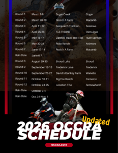 Please reference this flyer for our updated 2026 schedule. Note that Round 2 will now be at Rockin’ A Ranch to avoid back to back races at that location at the end of the spring half of the season. Round 6 will be Rose Ranch in between Ardmore and Marietta.